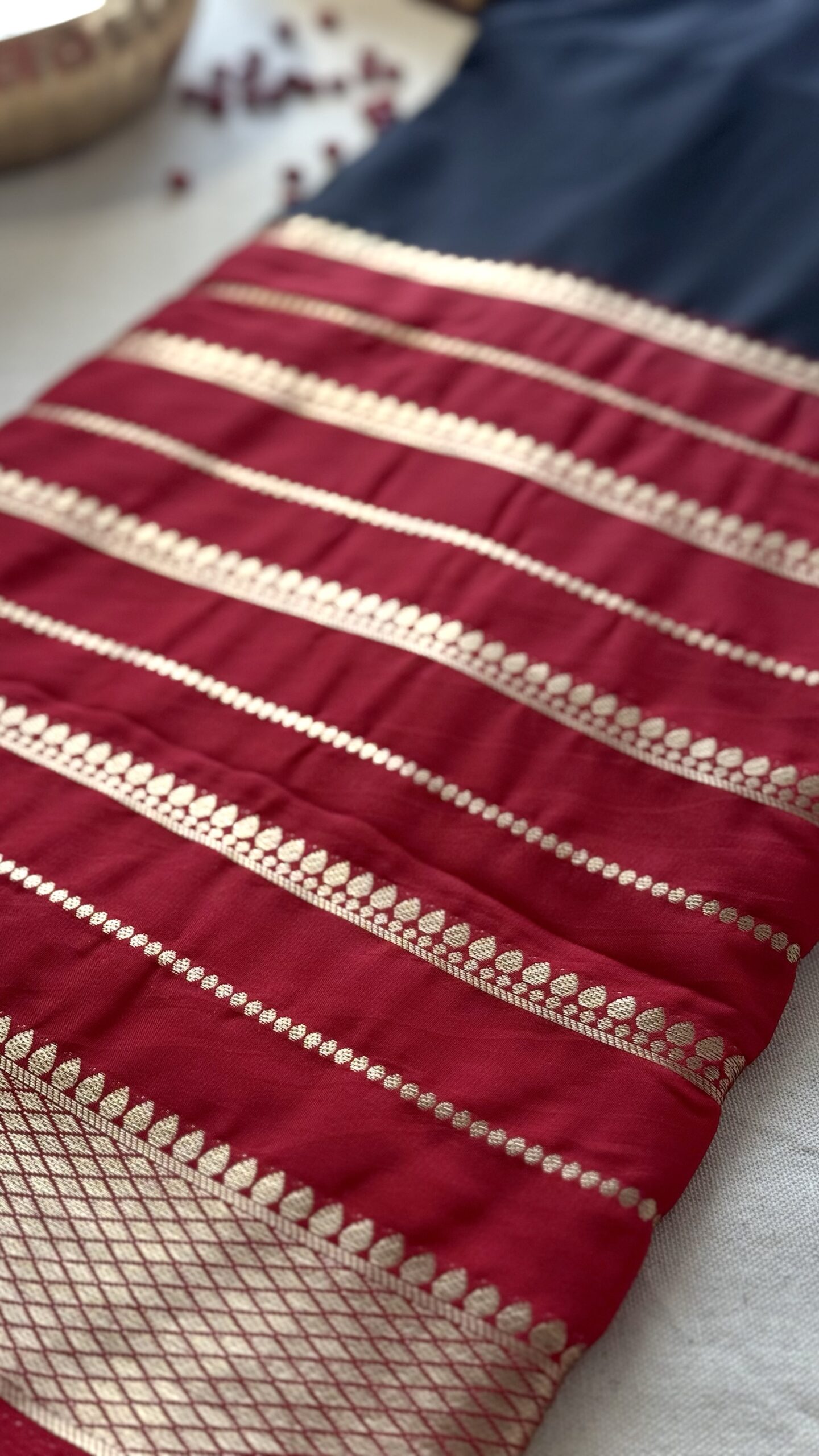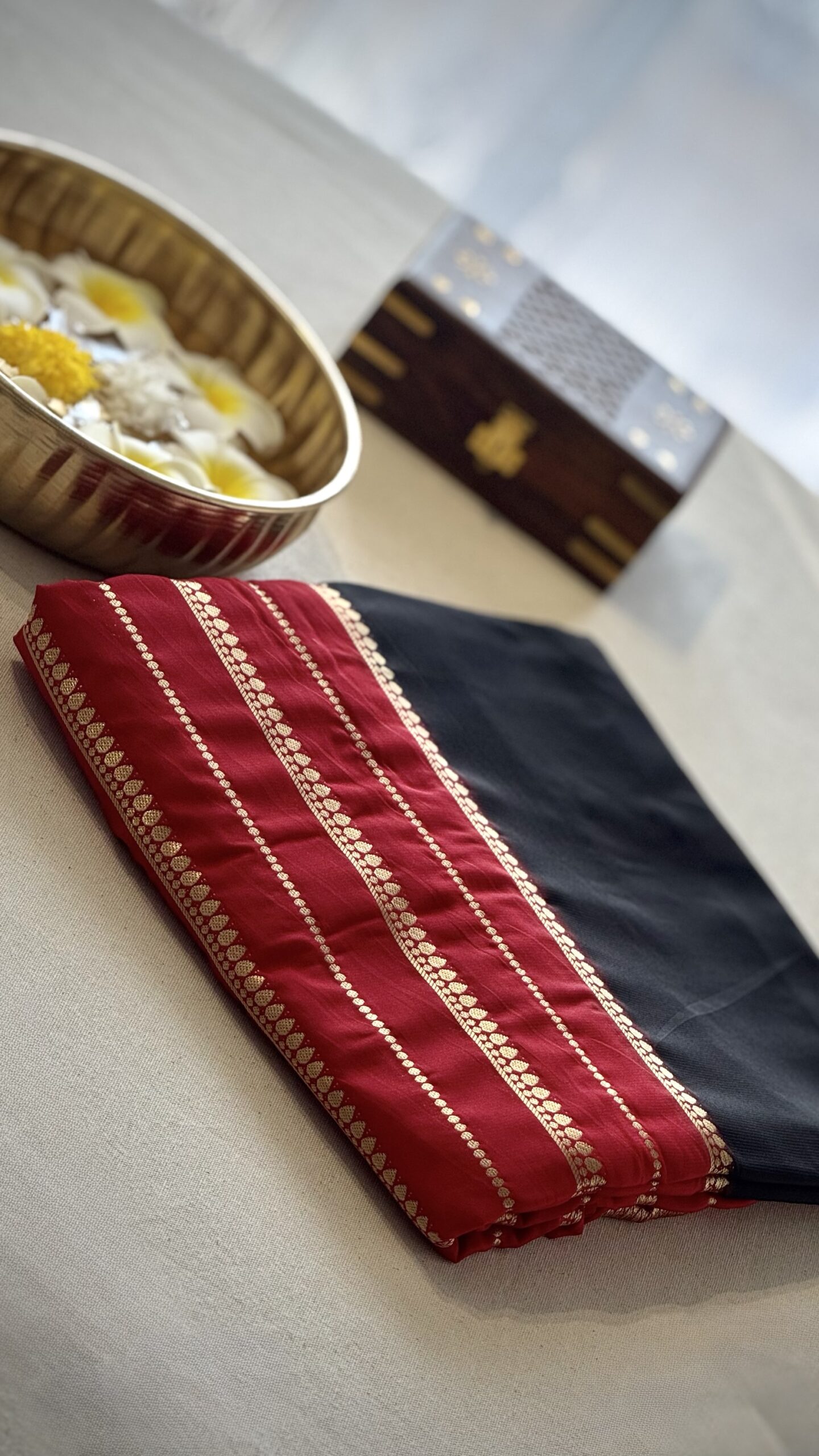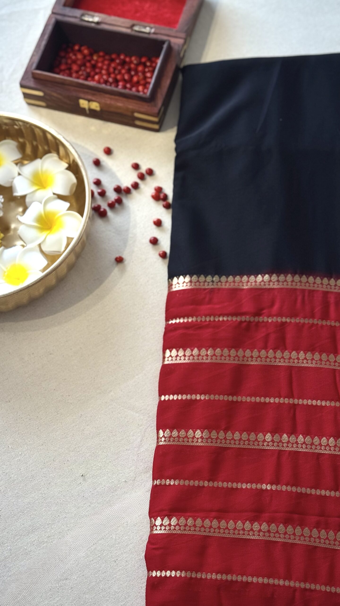 Aurya brings together black and red zari borders.